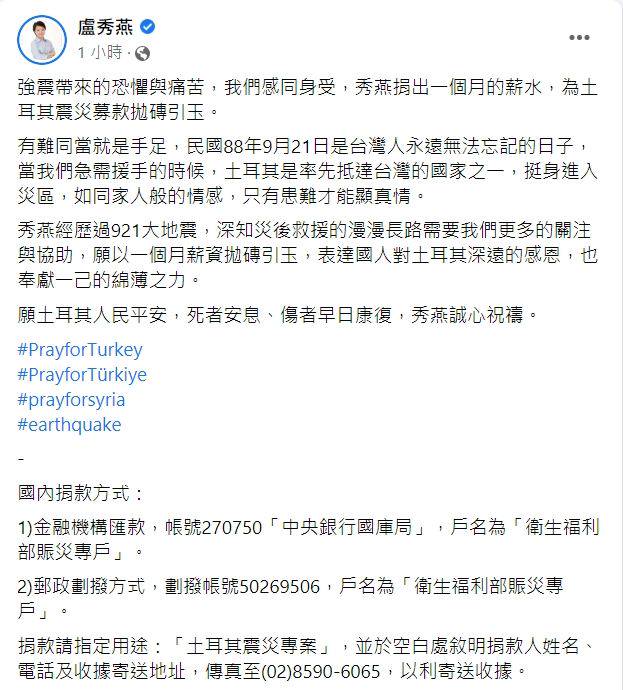 Web 1 day ago土耳其南部6日發生規模78強震目前已經超過4000人死亡15萬人受傷台灣第一批搜救隊也順利飛抵當地對此就有網友發文表示自己想捐款. Web 1 day ago外交部對土耳其援款增至200萬美元 設賑災捐款專戶. Web 17 hours ago國外民眾捐款帳號是007-09-11868-0兆豐國際商業銀行國外部戶名為衛生福利部賑災專戶.