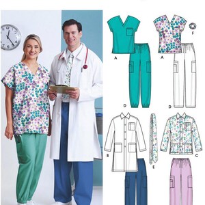 Sewing Pattern For Nurse S Or Doctor S Uniform Scrubs Etsy Canada Coat Pattern Sewing Trendy Sewing Patterns Sewing Patterns